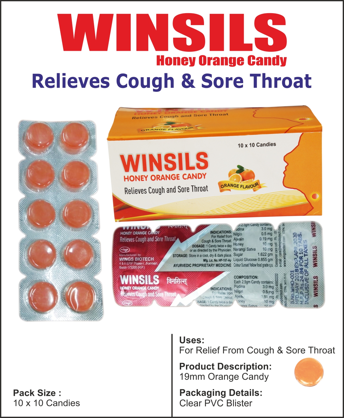 Winsils honey orange candy